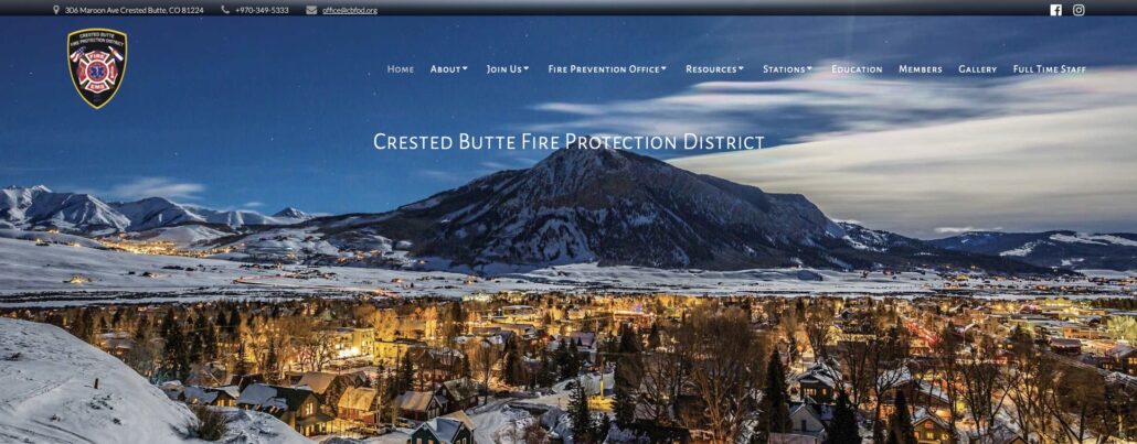- Home Fire Assessment – The Crested Butte Fire Protection District will provide a free assessment of your home. They provide emergency and non-emergency services throughout Crested Butte, Mt. Crested Butte, Crested Butte South and unincorporated parts of Gunnison County in the north end of the valley 24 hours a day.