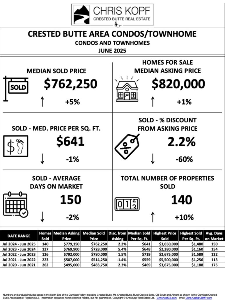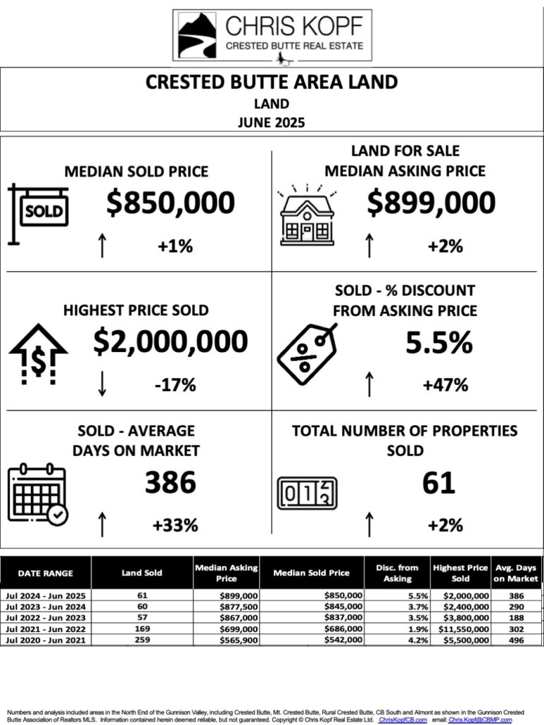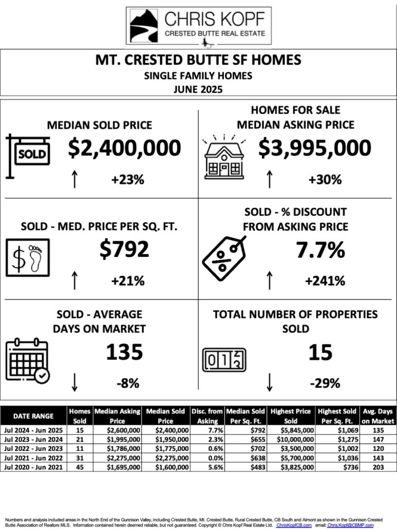 Crested Butte Real Estate Market July 2025, Showing Prior 12 Months Results Through June 2025 –