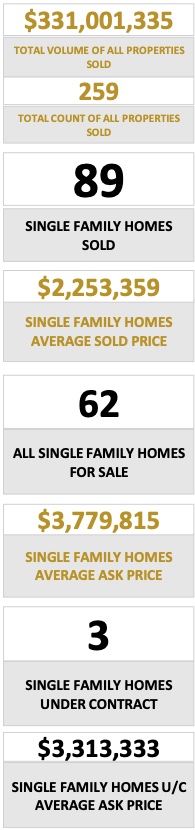 $3.5M +: 12 Single Family Homes sold and Average Price per sq. ft. of $1,248.