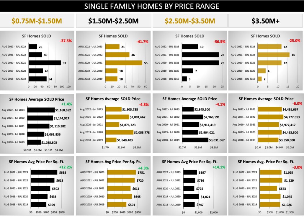 - The average sold price for single family homes was $2,175,712.