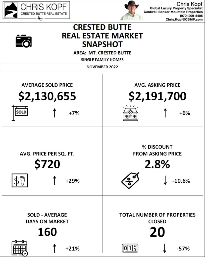 I hope you find the new format of this Crested Butte Real Estate Market Report November 2022 + Outlook!