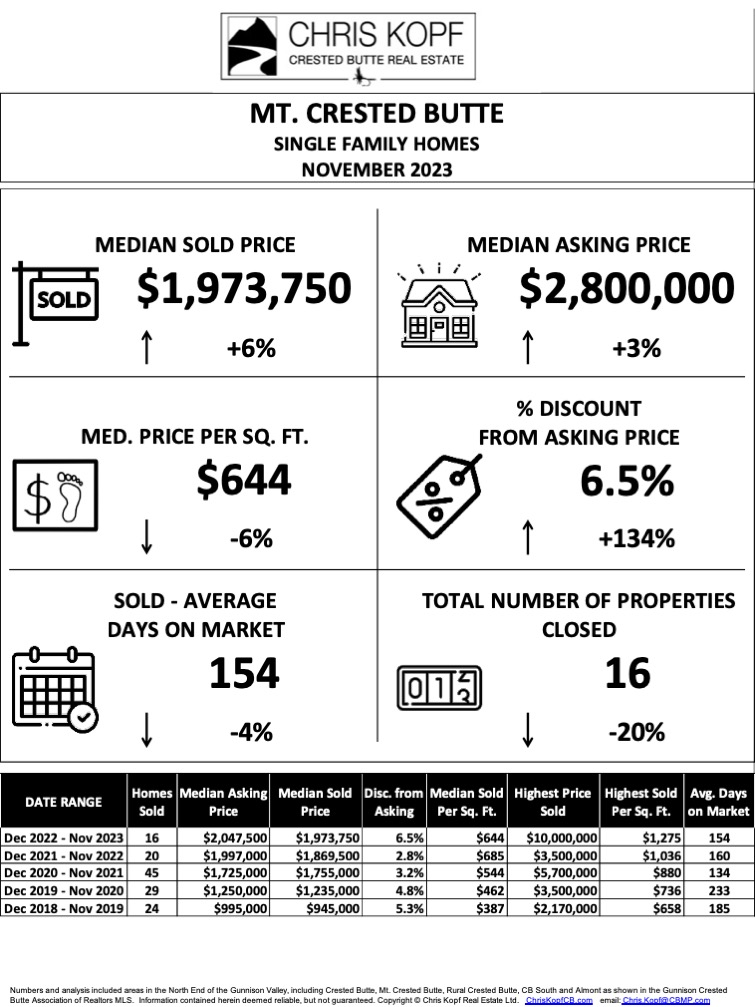For The Past 12 Months – Crested Butte Real Estate Market Report November 2023