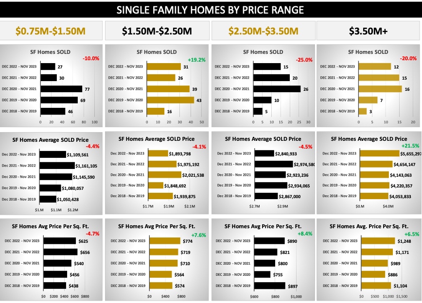 $2.5M – $3.5M: 16 Single Family Homes sold at Average Price per sq. ft. of $914.