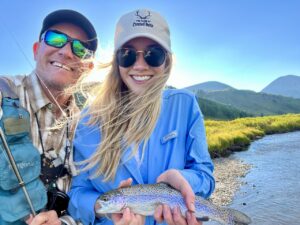 The trout I am holding in the photo is a very rare Palomino trout caught in the summer of 2022 on the East River here in Crested Butte.