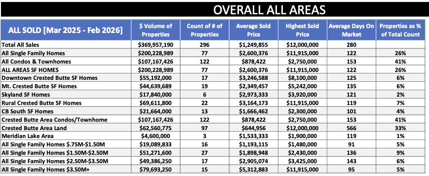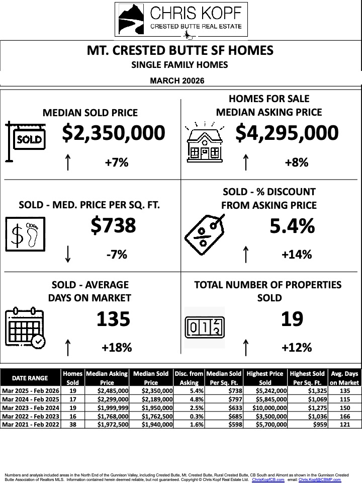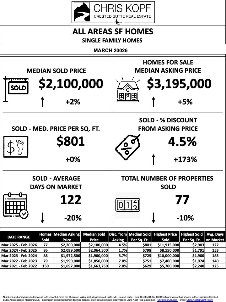 Crested Butte Real Estate Market Update | March 2026 | Trends & Stats – A Year in Review + 2026 Outlook – There is a lot going on in Crested Butte!