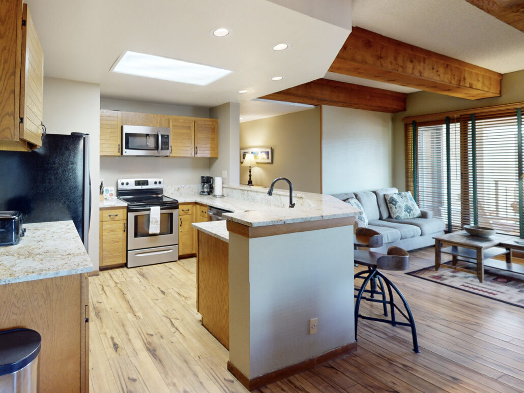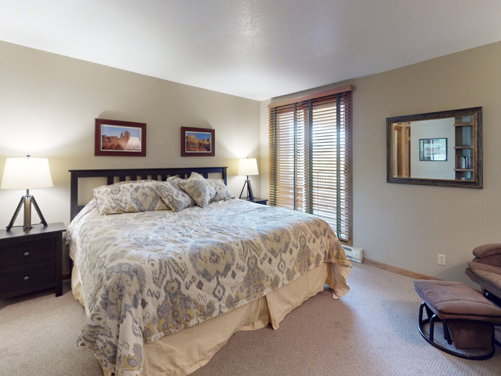 This ski condo has granite countertops, hardwood floors, and updated master bathroom. You will appreciate this ground level condo that provides easy in/out access – no stairs or elevators.