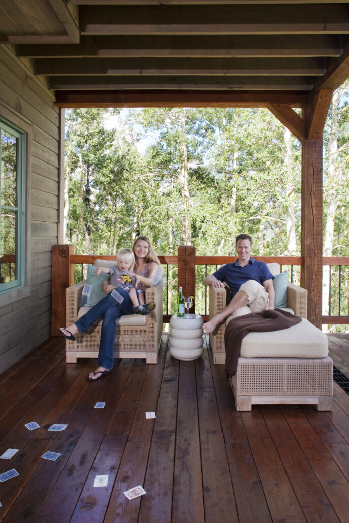 Outdoor Living: Expansive decks and a custom flagstone fire pit area offer “forever views” of the surrounding peaks.
