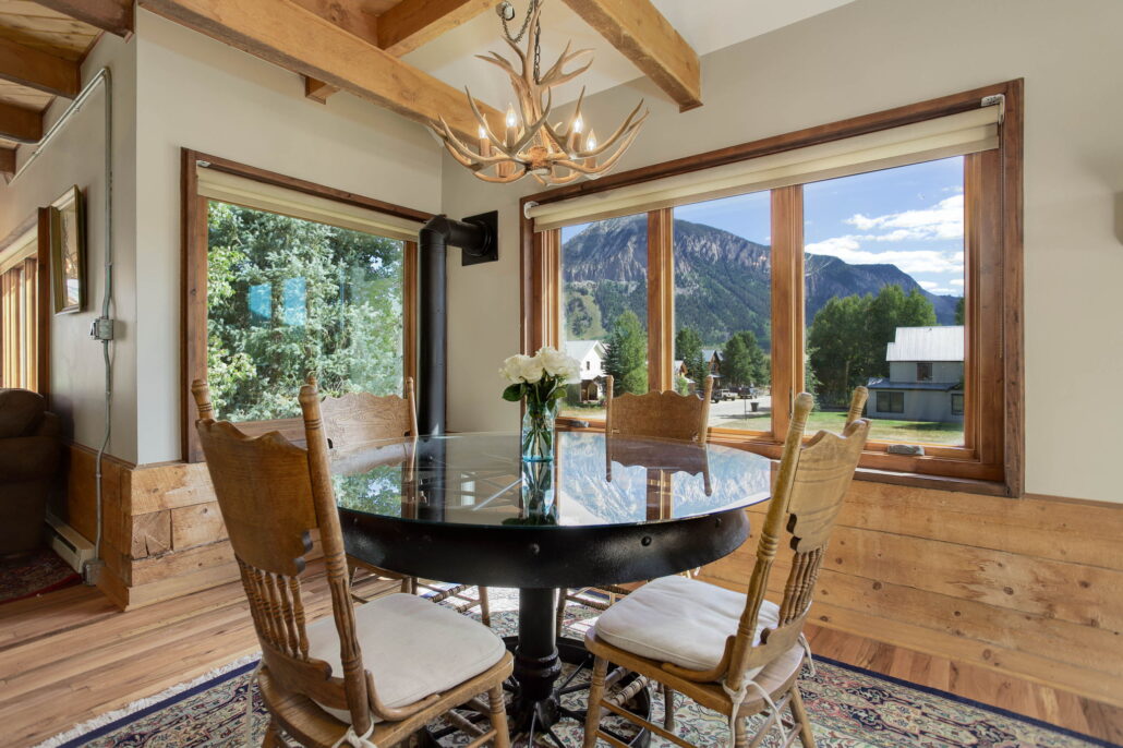 Awesome unobstructed views of Mt. Crested Butte, Gothic, Round Mountain, Whetstone and the surrounding peaks; unique to this location. Architect Andrew Hadley designed the extensive remodel of this home from the ground up. You will love the amazing new chef’s kitchen with high-end appliances including Viking 4 burner gas stove.