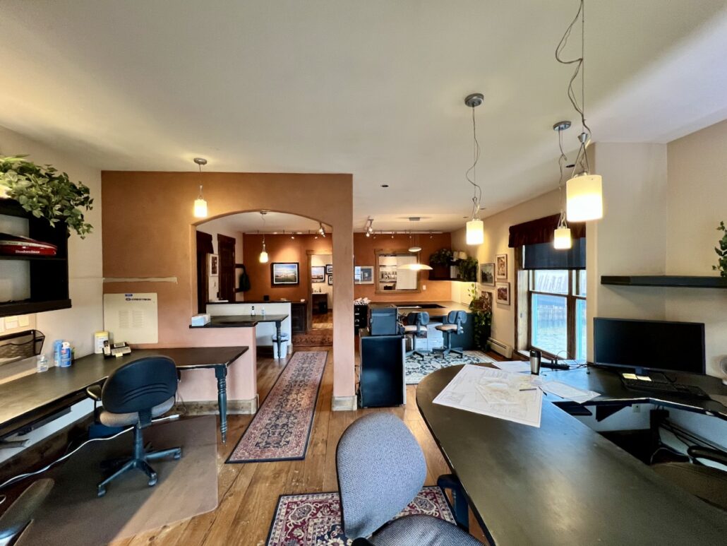 The open floor plan is fully furnished and tastefully updated, offering a modern andinviting atmosphere. Featuring elegant hardwood floors throughout and a beautiful lighting system, this office spaceexudes sophistication and professionalism. Ideal for a variety of professional uses, this well-appointed space is ready for immediate occupancy.